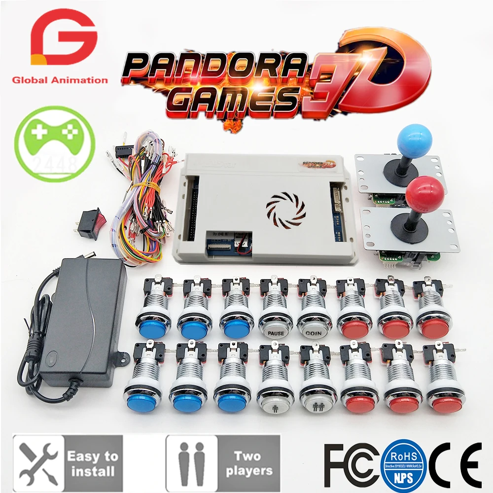 HOT SALE 2 Player Original Pandora Game 3D Kit Copy SANWA JoystickChrome LED Push Button for DIY Arcade Mach