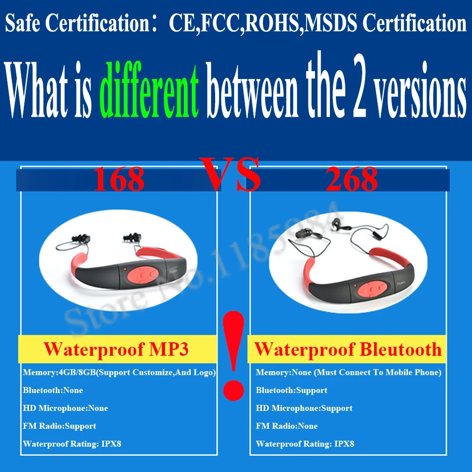 BEST QUALITY (268 IPX8 Waterproof Bluetooth 4.0 ; 168 4GB 8GB Waterproof MP3 Player FM Radio ) Swimming Diving U